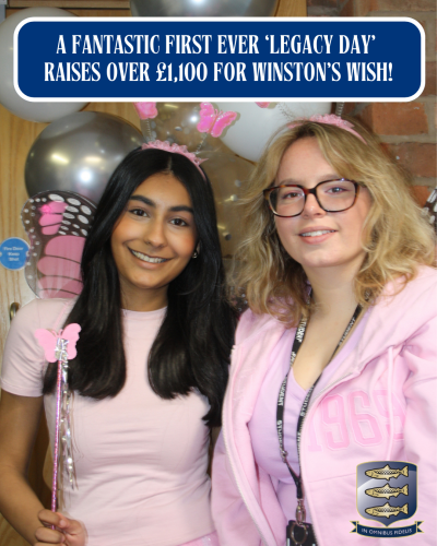 After raising over £1,100 for’ Winston’s Wish’ we say a massive thank for the joint efforts of the current and next years head girl teams for organising the event. We have little doubt that ‘Legacy Day’ will become a permanent fixture in our school calendar!