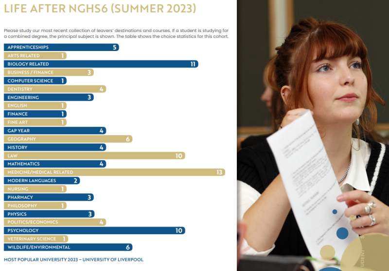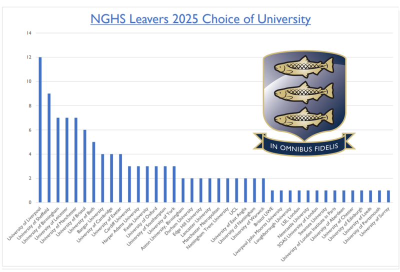 The Year 13 Leavers obtaned places at a range of universities throughout the UK and abroad. The University of Liverpool once again proved the most popular choice with Sheffield, Birmingham, Leicester and Manchester not far behind. In total, seven students accepted a place at Oxbridge with four joining Cambridge and three attending Oxford.